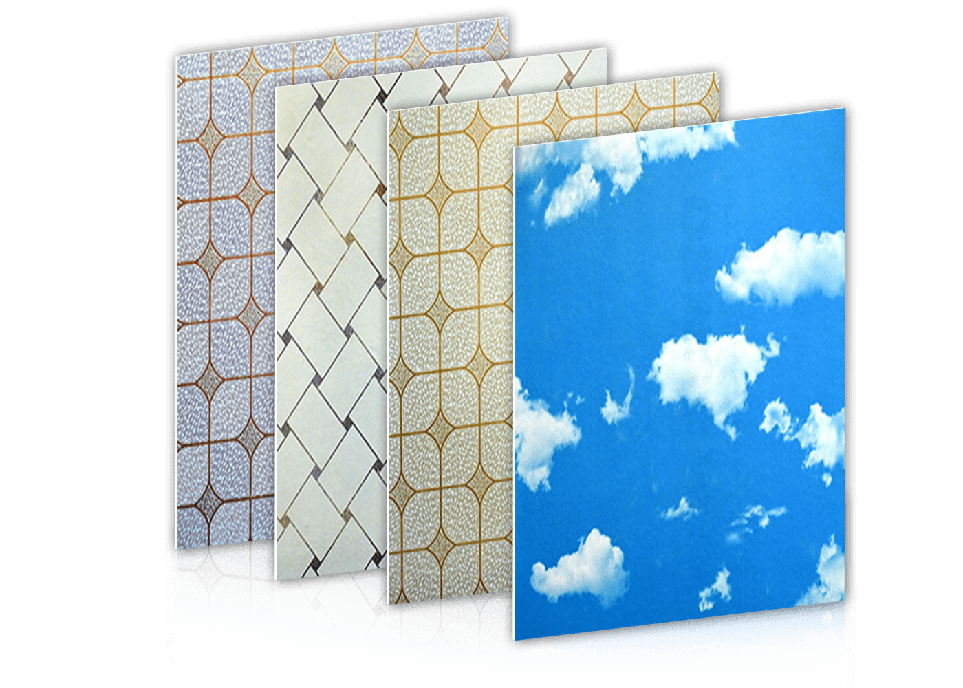 We offer ceiling boards in standard sizes such as 595x595mm and 1220x1220mm, with a typical thickness of 4mm.
